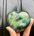 Dit labradoriet hart laat een prachtige blauwe en groene gloed zien zodra het licht erop valt. De achterkant heeft een donkerder stuk moedergesteente, wat de natuurlijke oorsprong van de steen mooi zichtbaar maakt.