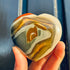 Een hart met prachtige overgangen tussen zachtgrijs, diepbruin en warme oranjetinten. Het gepolijste oppervlak maakt de vormen en kleurvlakken nog sprekender. Een stijlvol stuk met natuurlijke lijnen die blijven boeien.